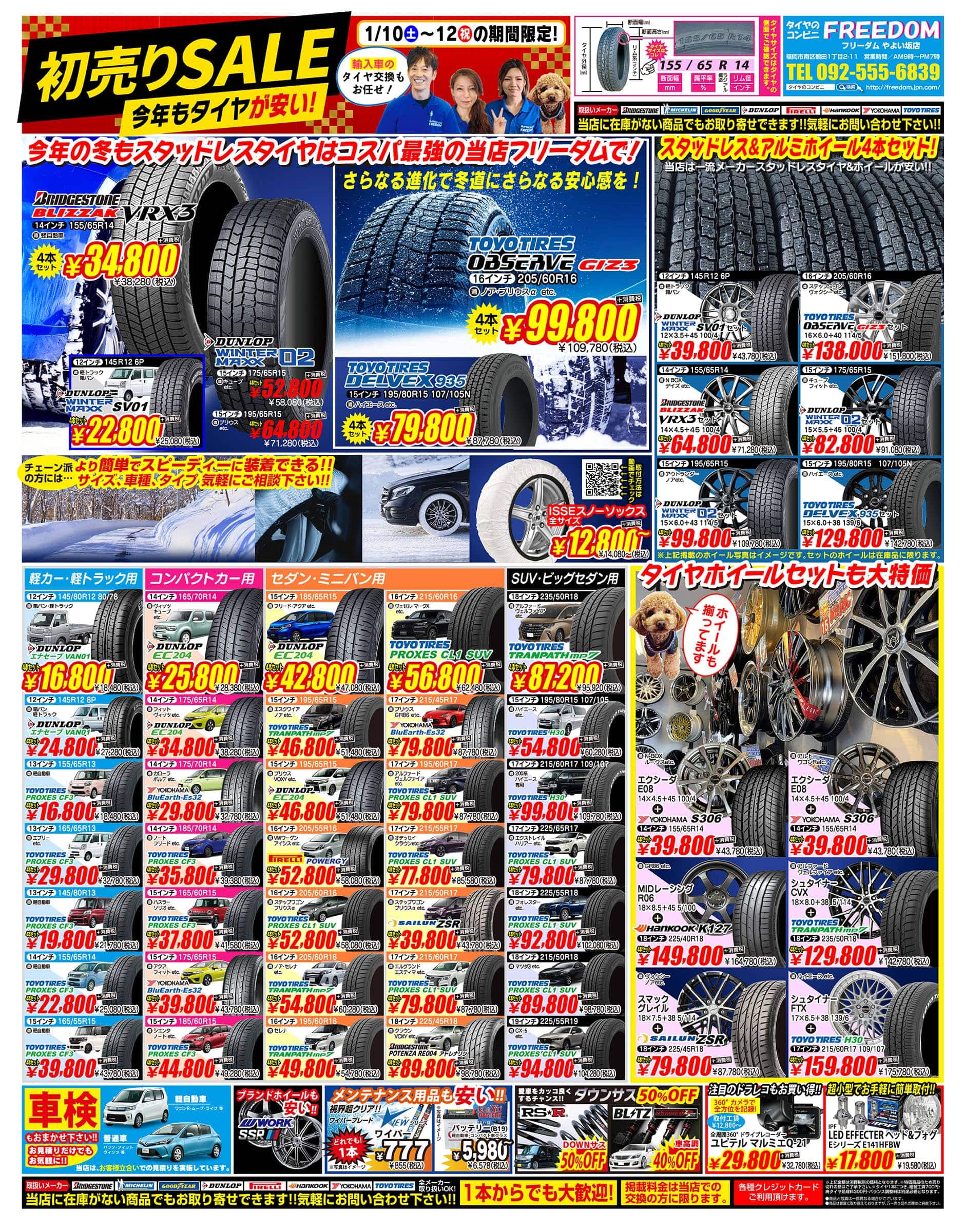 今年もやります!本当にタイヤが安いお店フリーダム! スタッドレスタイヤはもちろん!夏用タイヤやタイヤチェーンなどもお買得です! スタッフ一同、心よりお待ちしております。