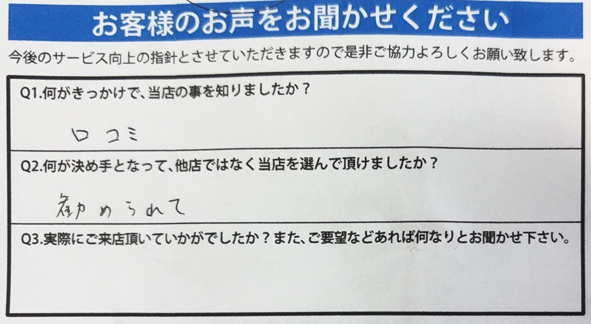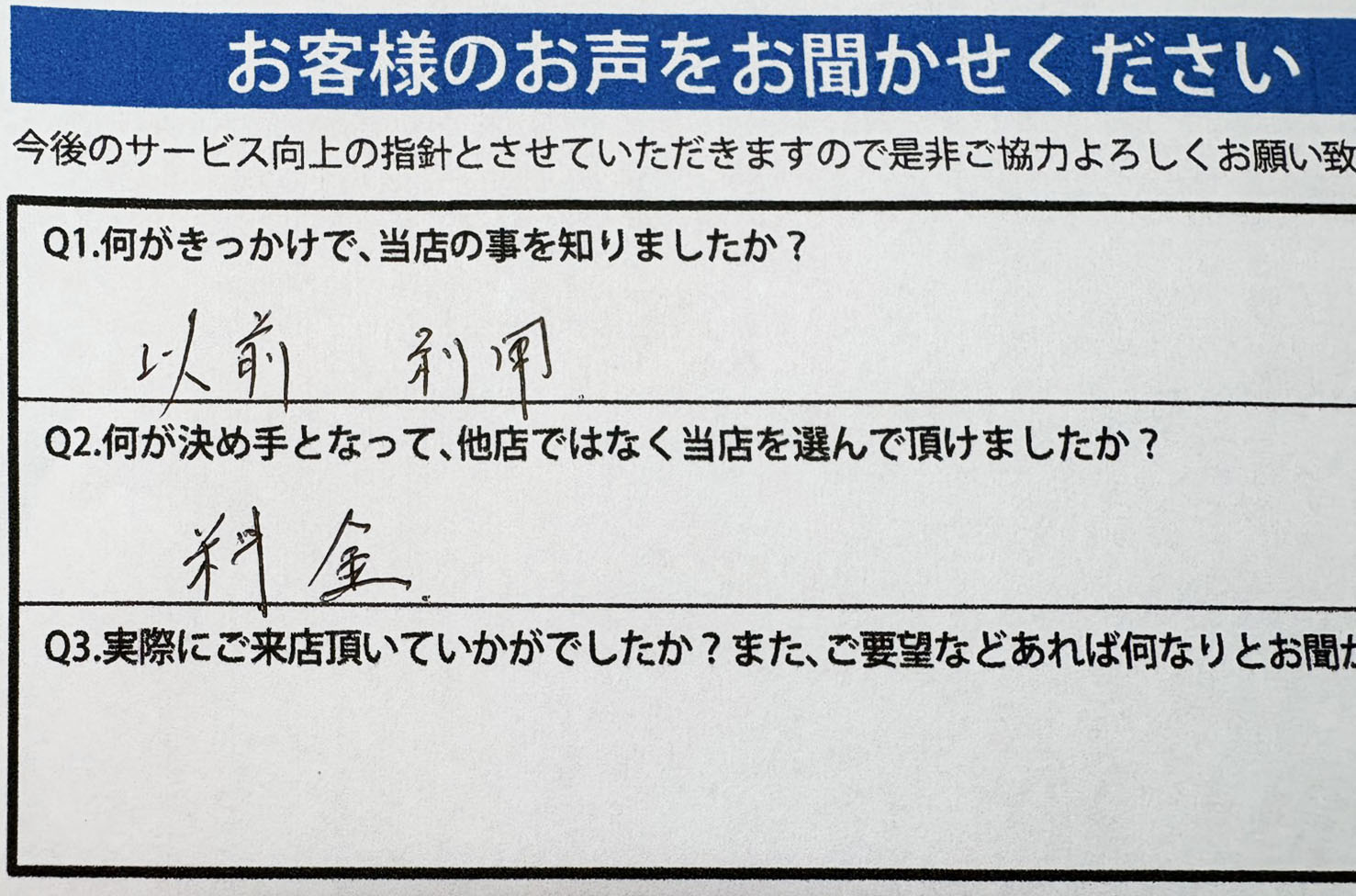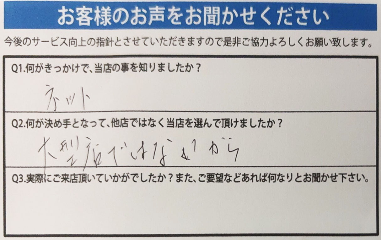Q3.何が決め手となって、他店ではなく当店を選んで頂けましたか?