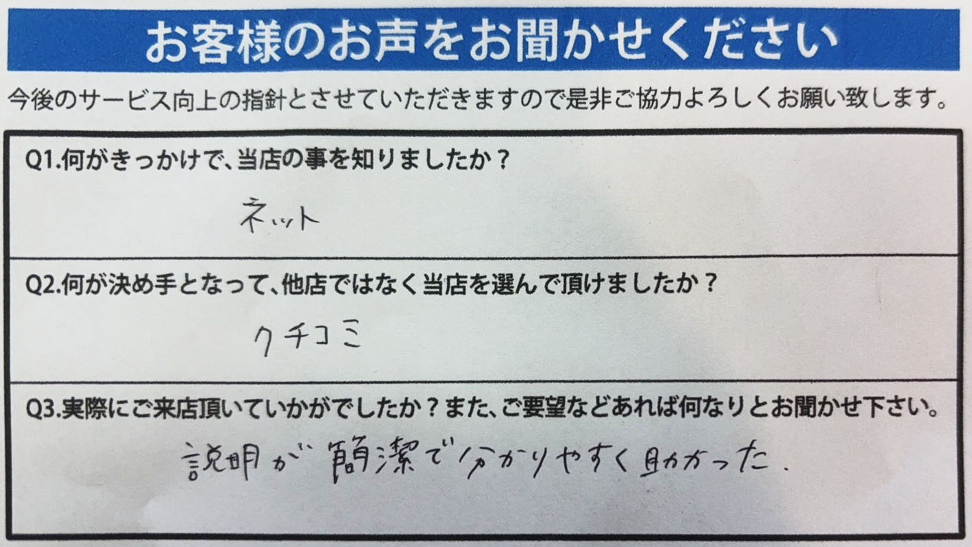 A.スタッフの対応、作業、価格の全てに大満足です!!