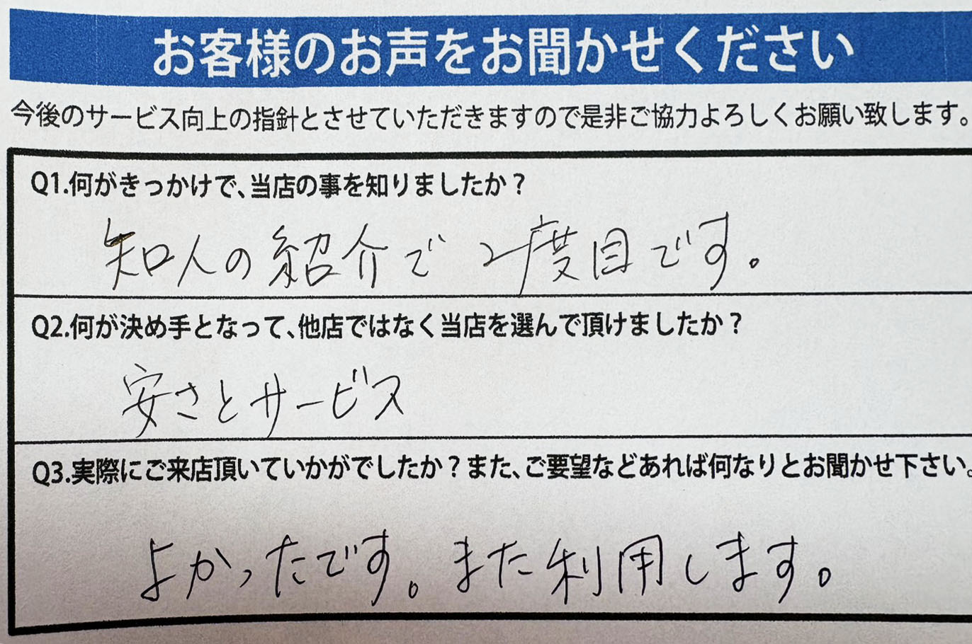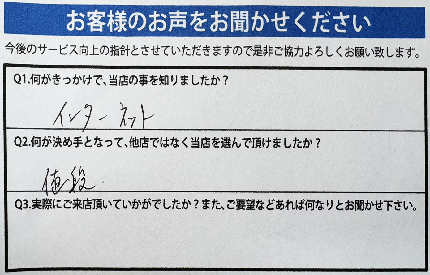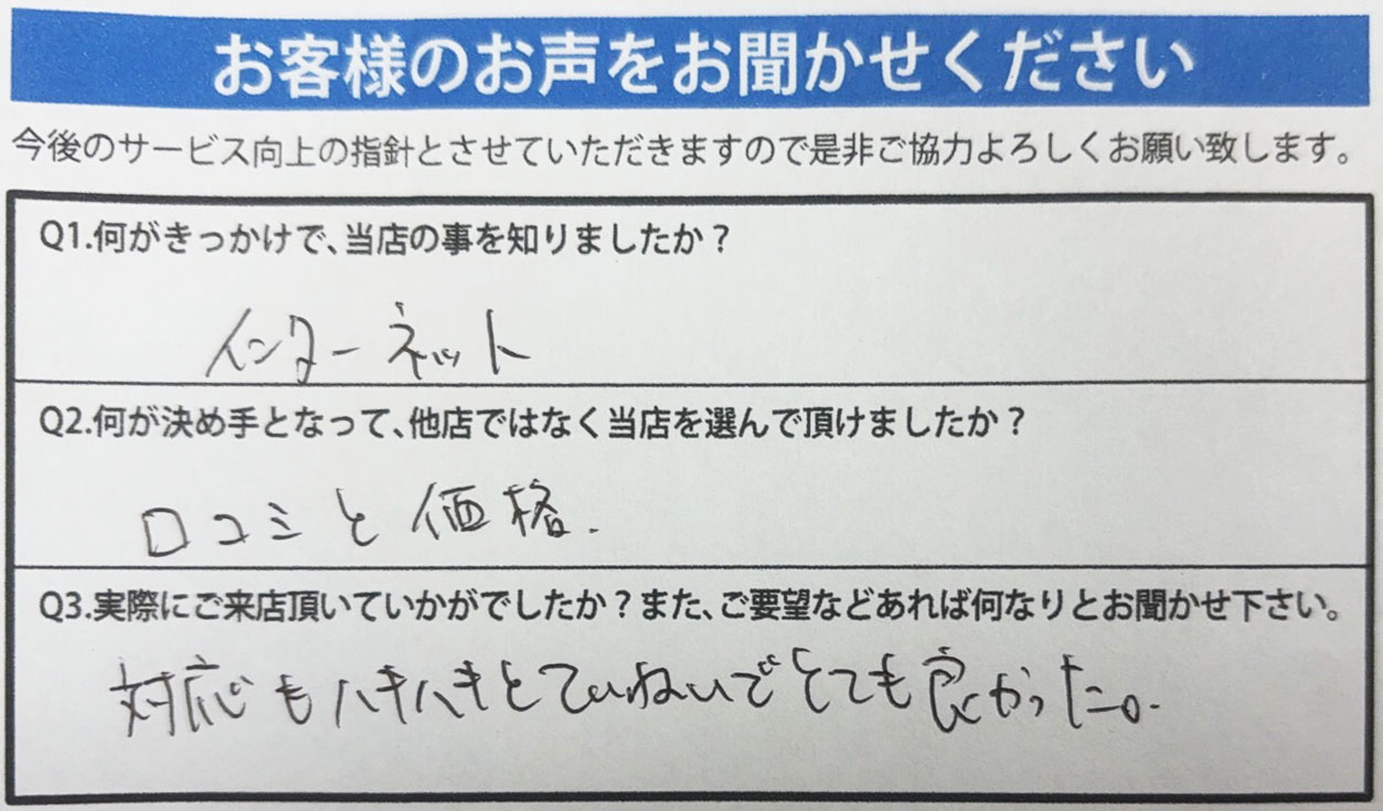 A.価格、社長をはじめスタッフ様の対応!!