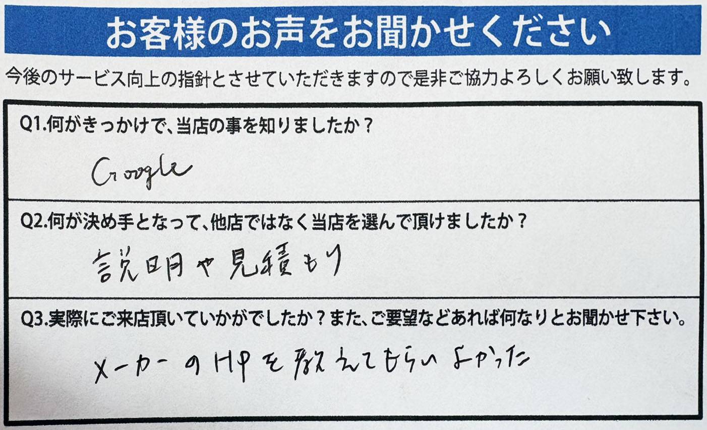 A.メーカーのHPを教えてもらいよかった