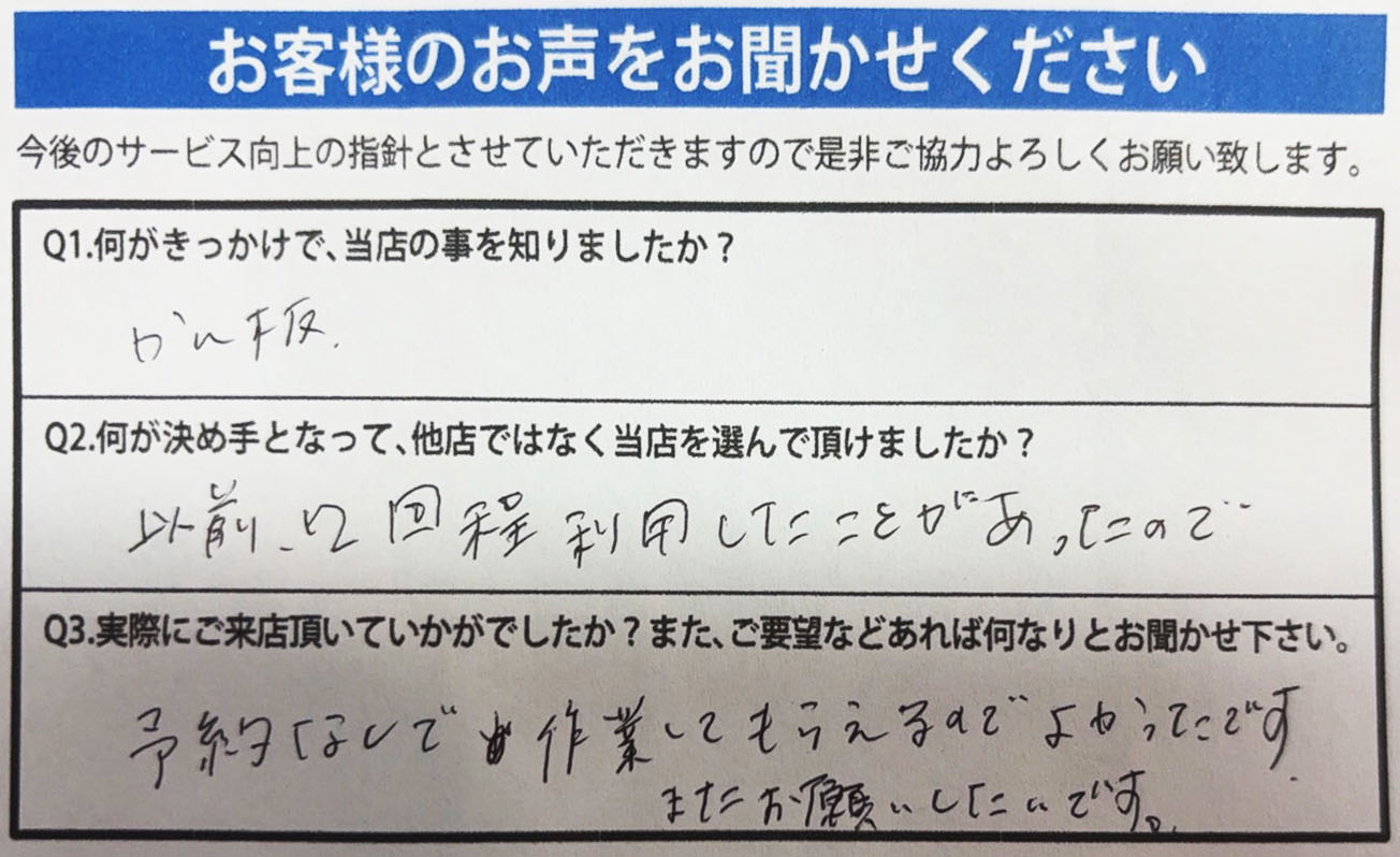 A.予約なしで作業してもらえるのでよかったです。