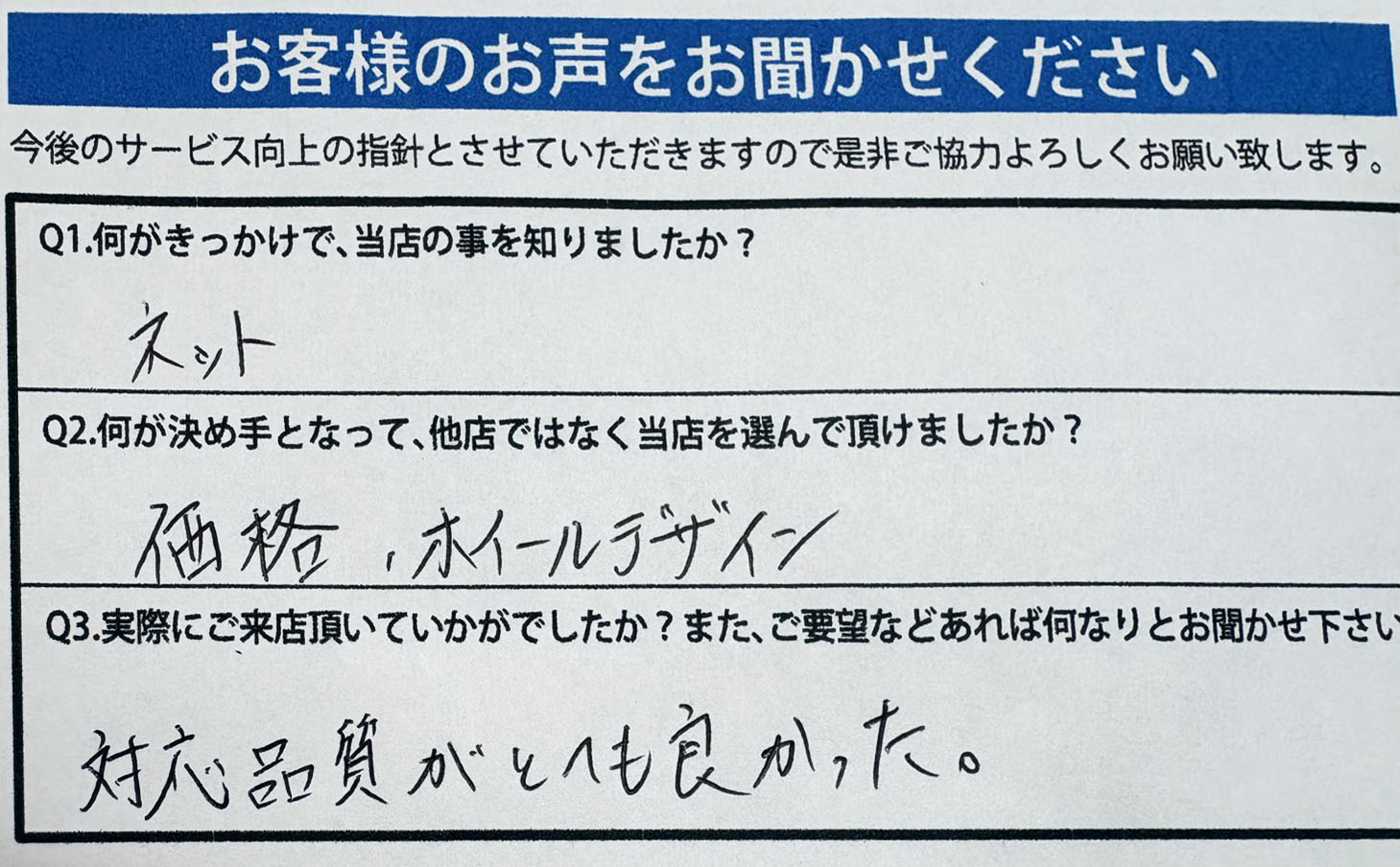 A.タイヤの事をよく聞けた。問い合せもわかりやすかったです。