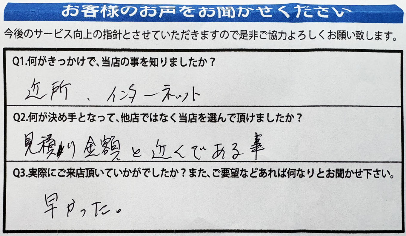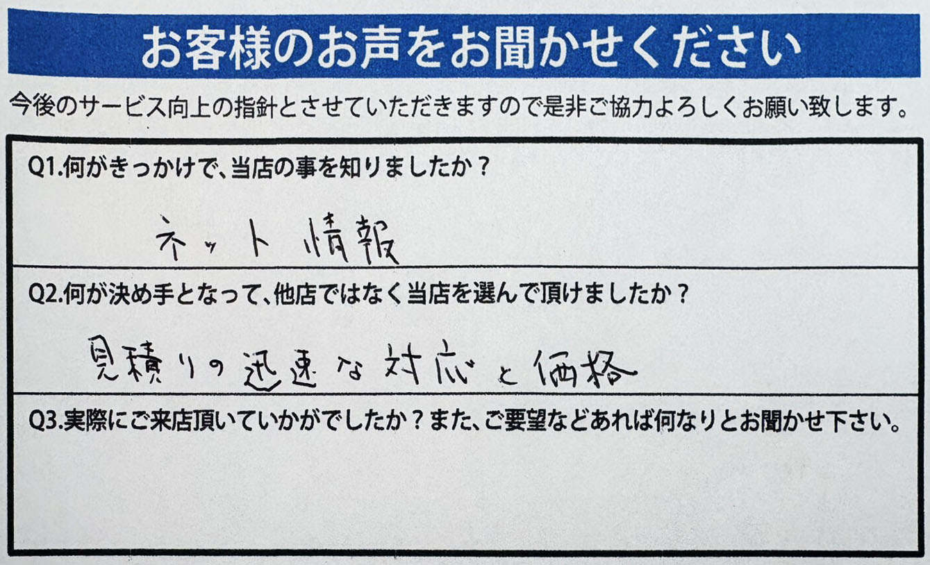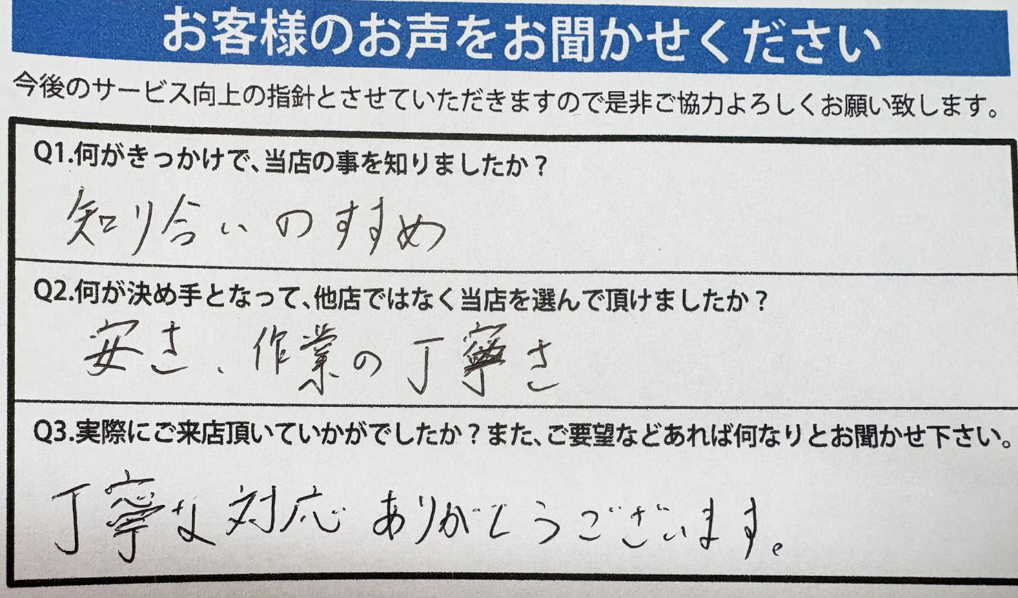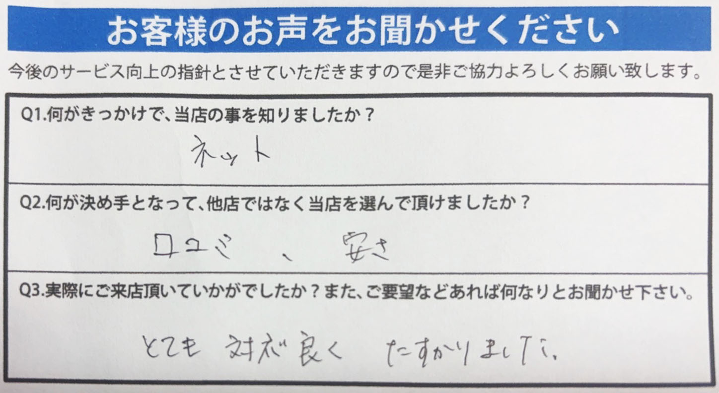 A.スタッフの対応、作業、価格の全てに大満足です!!