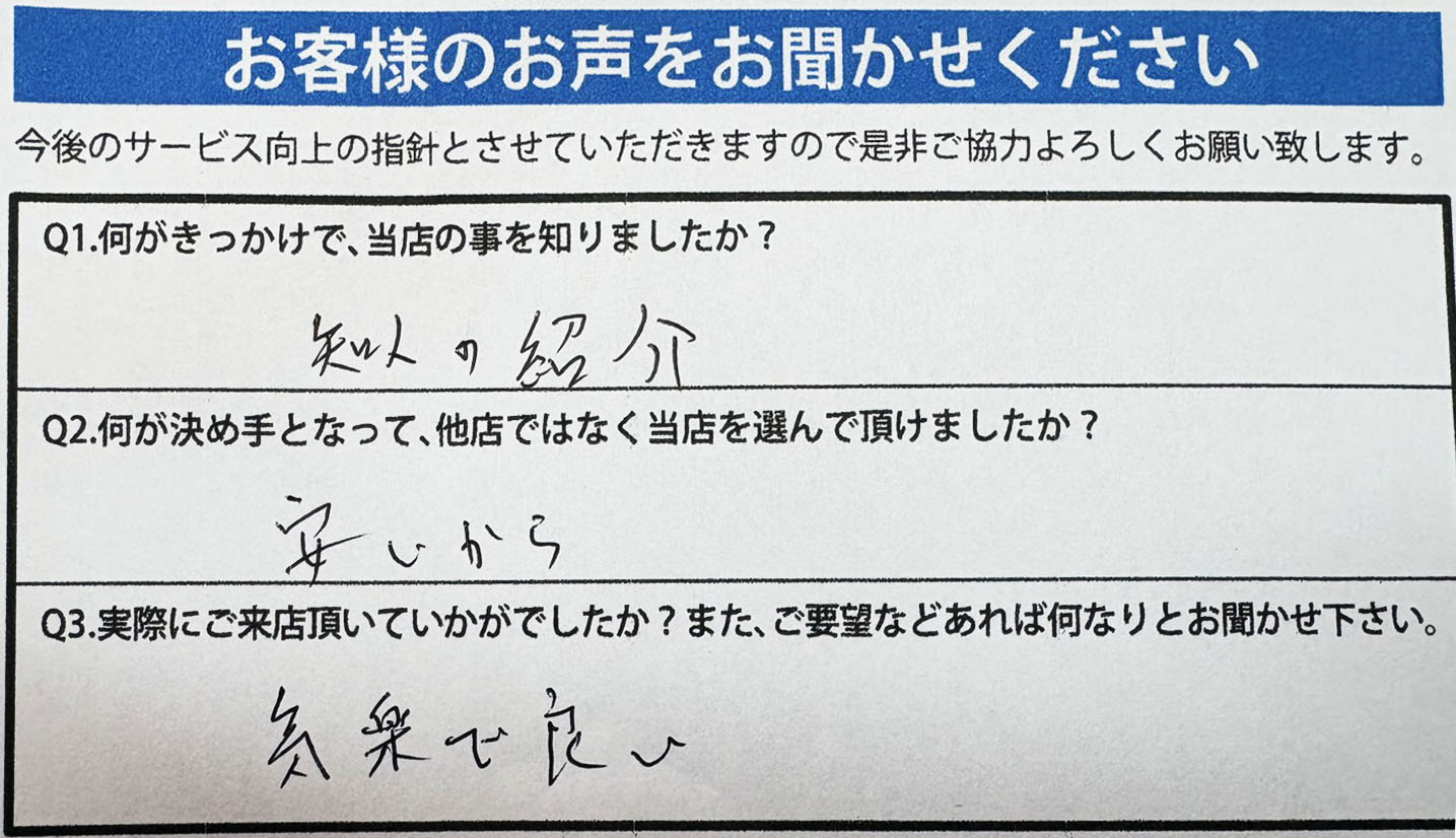 A.値段、以前主人のタイヤ交換で良くしてもらったから