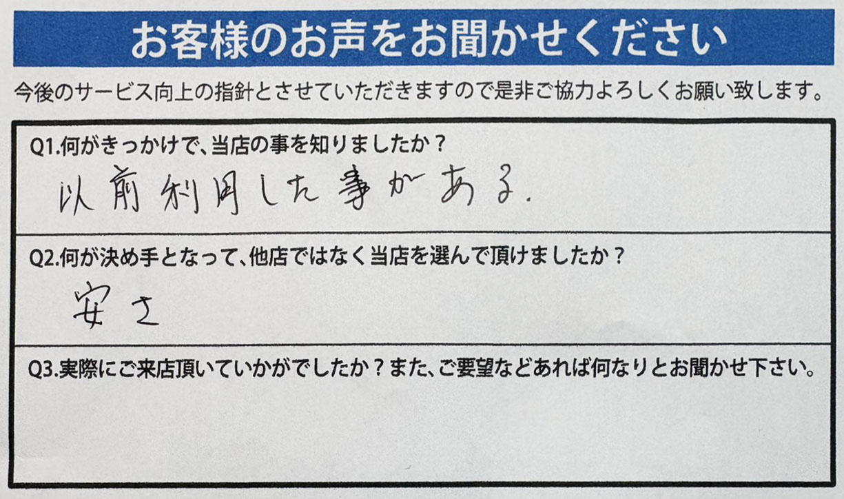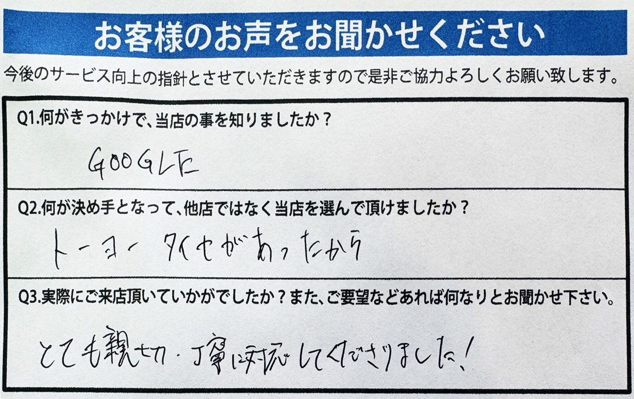 A.以前、タイヤを購入した時に料金も安くてサービスがよかったので